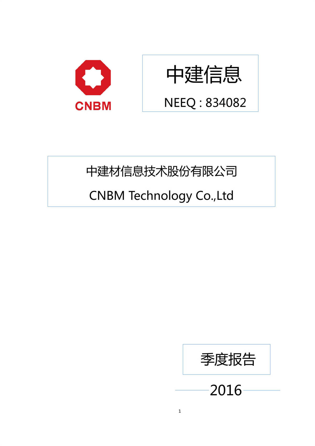 中建信息2016年第一季度報告